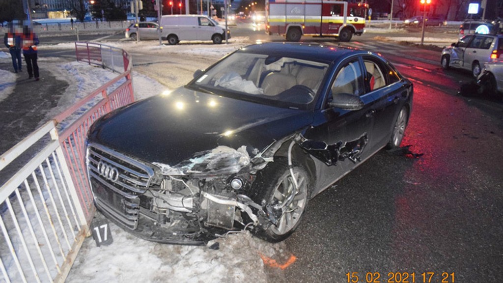 „Tam narazil do vozidla zn. Seat Toledo, ktoré sa nárazom posunulo do stojaceho autobusu MHD, ktoré stálo na križovatke na červenú. Vodič Audi však ďalej pokračoval v jazde, narazil do stojaceho vozidla zn. Škoda Octavia a potom do kovového zábradlia, ktoré však nepoškodil," opísala nehodu.