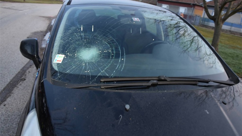 Po náraze zostala aj preliačina na čelnom skle auta.