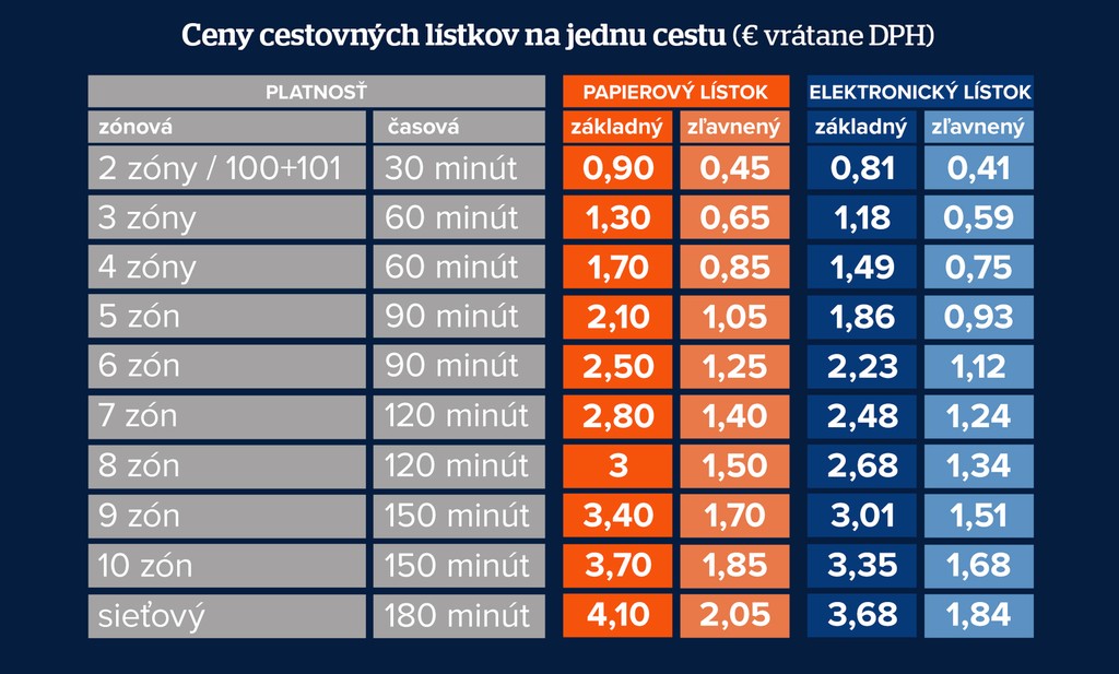 Od 1. júla by zmenia aj ceny niektorých lístkov potrebných pre cestu MHD. Zachované ostanú časové lístky od 30 až do 180 minút, zrušia sa tzv. 15 minútové lístky. Ceny sa líšia aj od toho, aký lístok použijete a ako si ho kúpite - papierový, predplatený alebo si ho kúpite bankomatovou kartou.