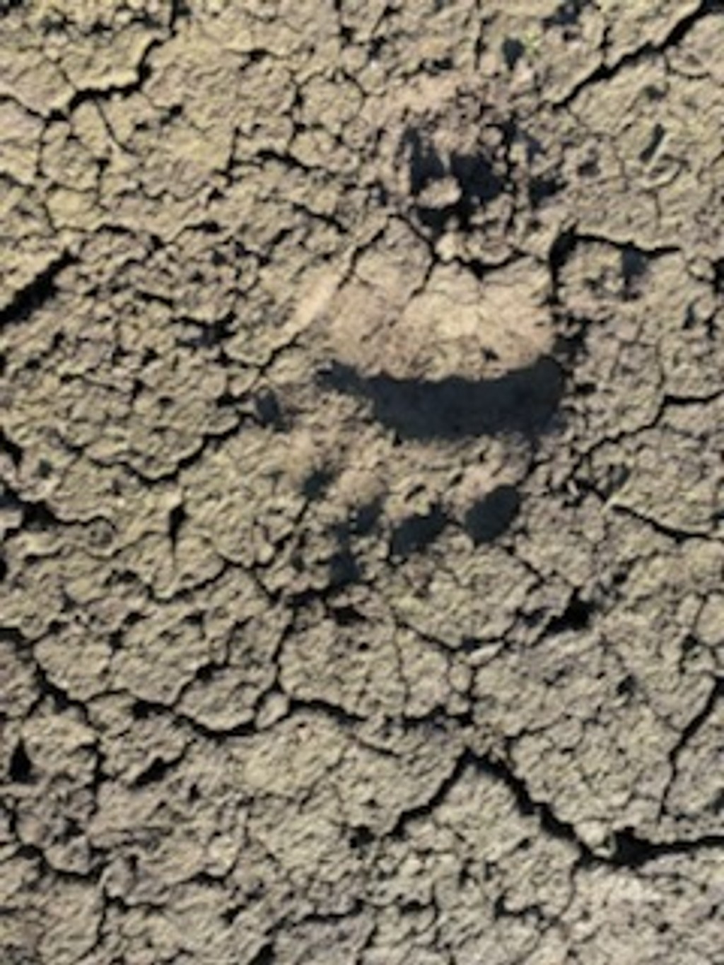 Poľovníci si odfotili aj stopu medveďa, v oráčine ich nevidieť často. Poľovníci len špekulujú, prečo sa tam zatúlal. Myslia si, že sa pre medveďov stráca teritórium, alebo sú premnožení.