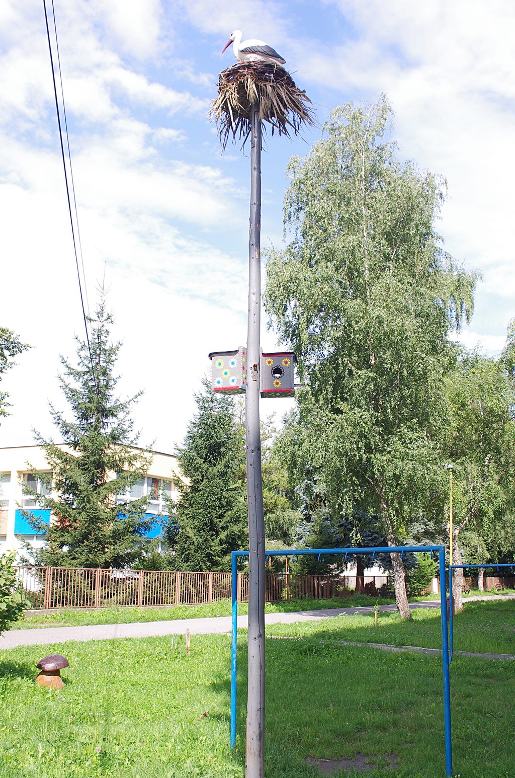 domček a pred dvoma týždňami pribudla aj maketa bociana v hniezde na päťmetrovom stĺpe. Keďže dielo bolo darom k štvrtým narodeninám vnuka, postavili ho v noci ako prekvapenie.
