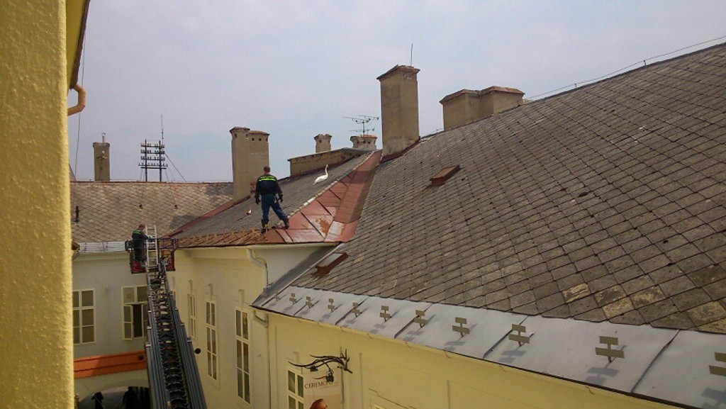 Hasiči v Košiciach dnes zažili netradičný zásah. Na streche jedného z domov zachraňovali zakliesnenú labuť.
