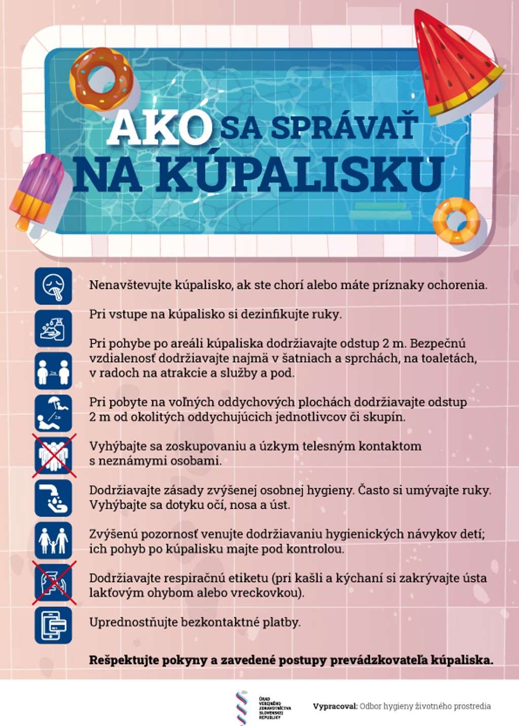 Pri vstupe na kúpalisko musia zabezpečiť dezinfekciu na ruky pre návštevníkov.