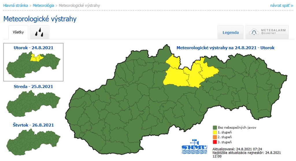 Slovenský hydrometeorologický ústav (SHMÚ) upozorňuje na dážď. Pre okresy Liptovský Mikuláš, Tvrdošín, Kežmarok a Poprad vydal výstrahy prvého stupňa. Platia do utorňajšieho popoludnia. SHMÚ o tom informuje na svojom webe.