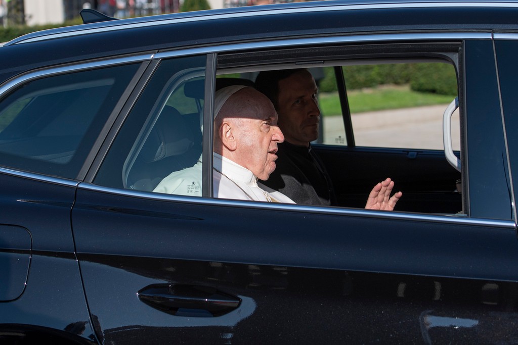 16.34 - Pápež vyšiel z centra, kde sa pozdravil s chorými, o ktorých sa sestry starajú. Spolu s prítomnými sa pomodlil modlitbu Zdravas Mária, udelil požehnanie a odovzdal rehoľným sestrám dar v podobe ikony Panny Márie. Pred odchodom ešte pristúpil najmä k deťom a hendikepovaným. Rozlúčil sa s prítomnými a odišiel na ďalšie stretnutie.