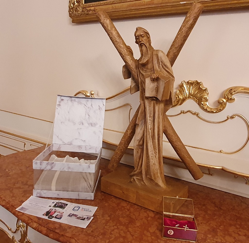 Po krátkom príhovore dostal od miestnej komunity dva obrazy a jednu plastiku. Ide o originálne umelecké stvárnenia dvoch