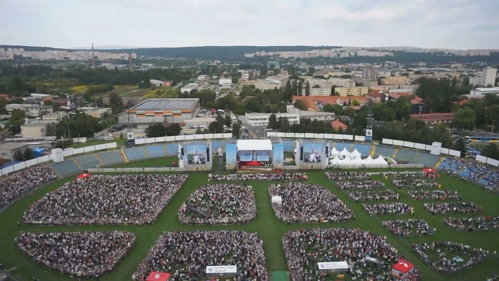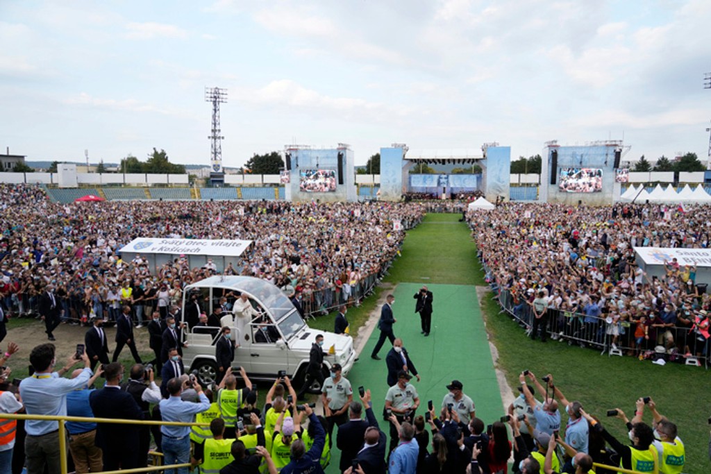 Pontifik sa presúva na štadión Lokomotívy, kde sa stretne s mladými ľuďmi.
