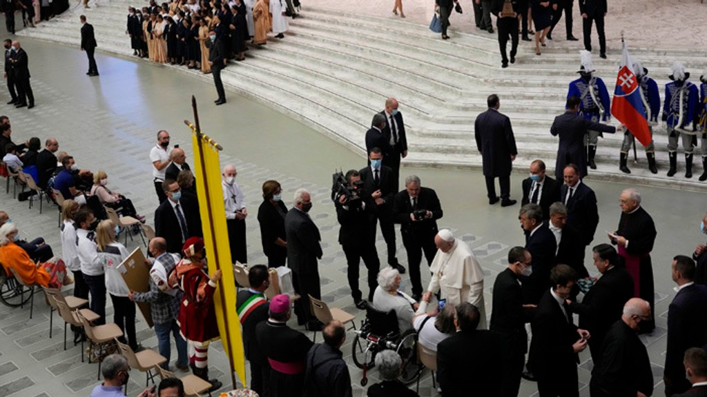 Týždeň po návšteve pápež opäť pozdravil Slovensko. Vo Vatikáne označil František našu krajinu za srdce Európy. Na generálnej audiencii mu policajti, hasiči, príslušníci väzenskej či čestnej stráže a pútnici odovzdali symbolický dar z vďaky za návštevu Slovenska.