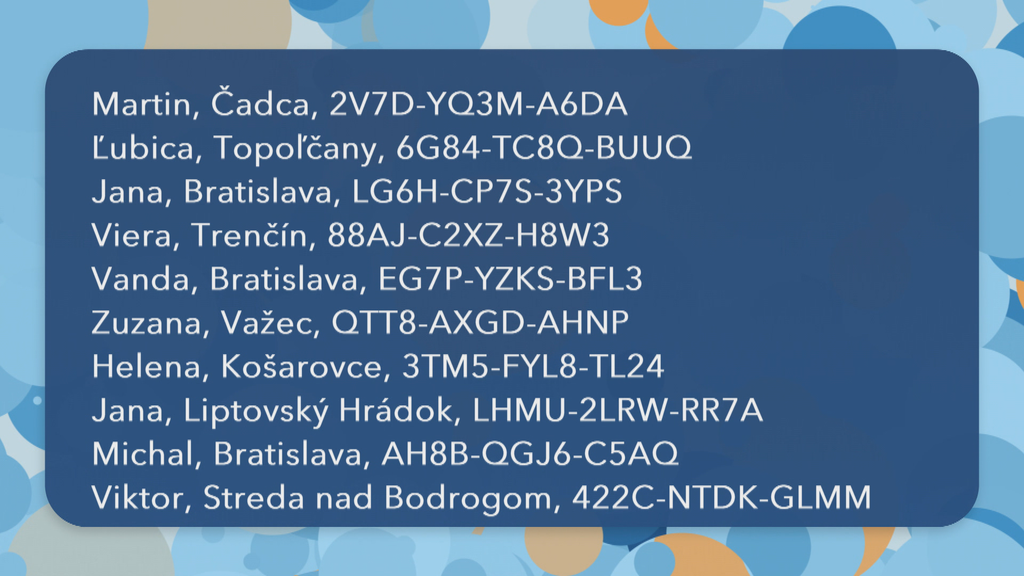 V zozname, ktorý nájdete na tejto stránke, môžete nájsť aj výhercov za predchádzajúce obdobie. Vyhľadávať v ňom sa dá podľa mena, mesta, čísla žrebu alebo výhry.