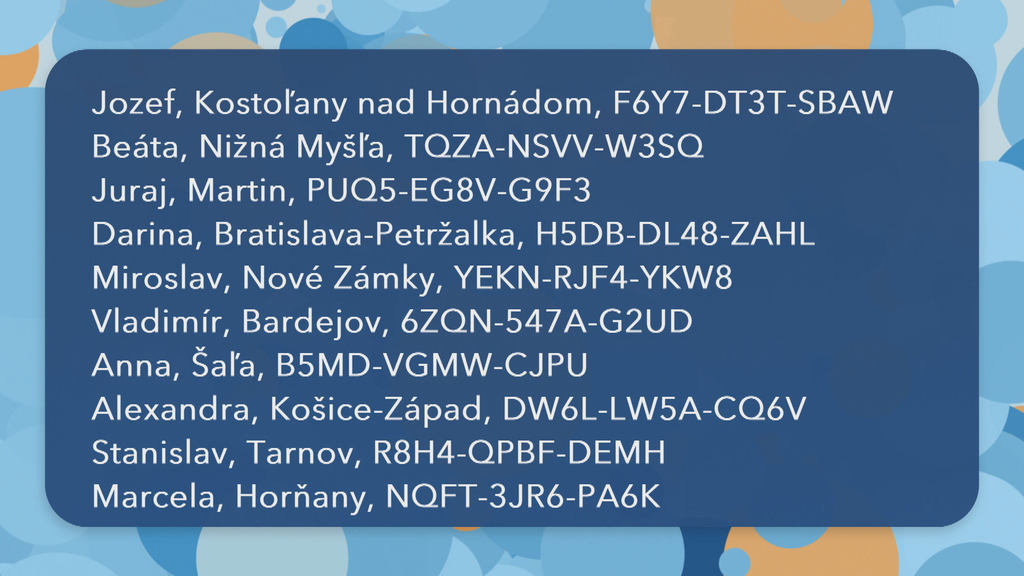 V zozname, ktorý nájdete na tejto stránke, môžete nájsť aj výhercov za predchádzajúce obdobie. Vyhľadávať v ňom sa dá podľa mena, mesta, čísla žrebu alebo výhry.