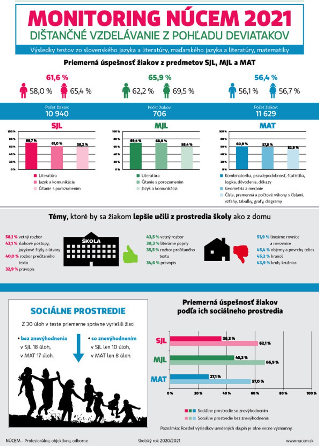 Žiaci reprezentatívnej vzorky dosiahli podľa NÚCEM v teste z matematiky priemernú úspešnosť 56,4 percenta. Žiaci osemročných gymnázií boli významne úspešnejší (76,0 %) v porovnaní so žiakmi základných škôl (54,8 %).