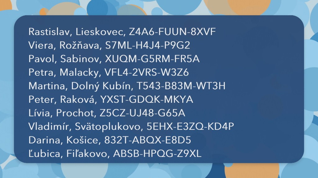 V zozname, ktorý nájdete na tejto stránke, môžete nájsť aj výhercov za predchádzajúce obdobie. Vyhľadávať v ňom sa dá podľa mena, mesta, čísla žrebu alebo výhry.