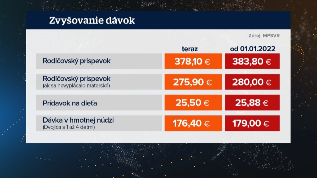Plánované zvýšenie dávok na budúci rok preto nebude stačiť. Napríklad rodičovský príspevok sa zvýši maximálne o necelých šesť eur, prídavky o 38 centov mesačne.