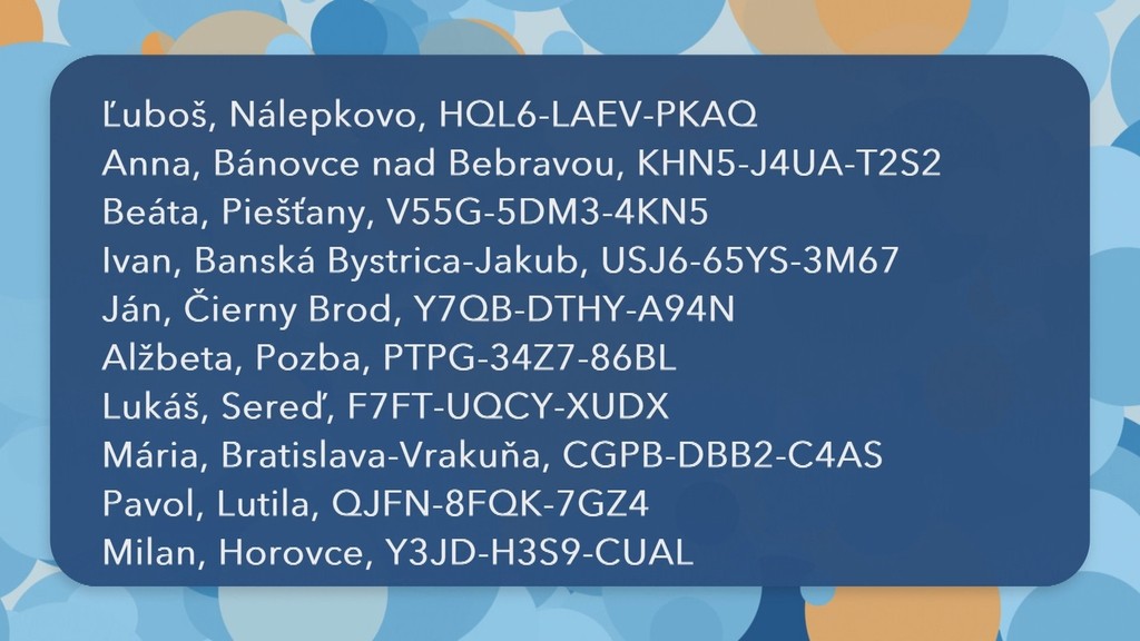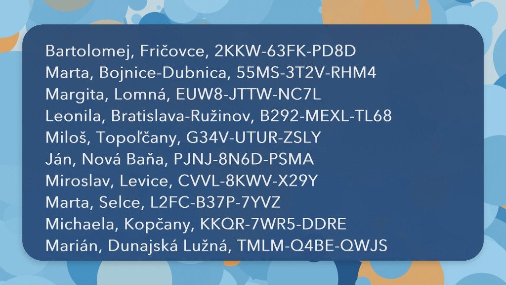 V zozname, ktorý nájdete na tejto stránke, môžete nájsť aj výhercov za predchádzajúce obdobie. Vyhľadávať v ňom sa dá podľa mena, mesta, čísla žrebu alebo výhry.