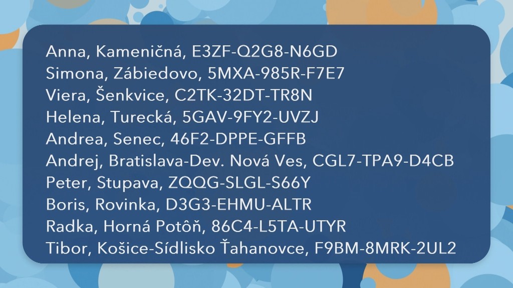 V zozname, ktorý nájdete na tejto stránke, môžete nájsť aj výhercov za predchádzajúce obdobie. Vyhľadávať v ňom sa dá podľa mena, mesta, čísla žrebu alebo výhry.