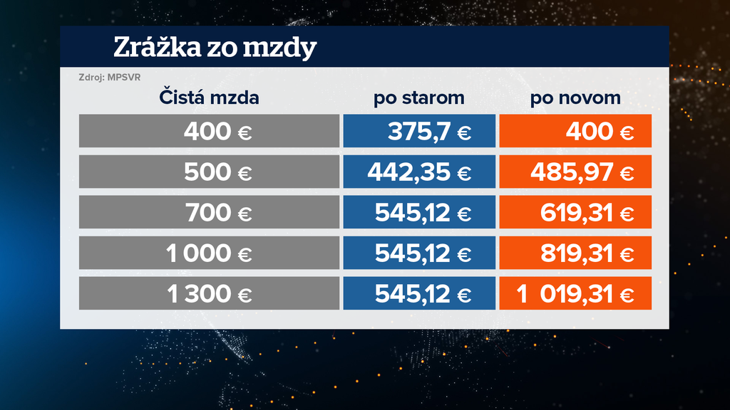 Napríklad dlžníkovi, ktorý má dve deti a zarába v čistom 700 eur, ostalo po zrážke zo mzdy na účte 545 eur. Teraz dostane o takmer 75 eur viac. Od čistej mzdy 1300 EUR sa sumy po zrážke exekútorom nemenia.