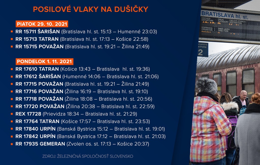 Železnice vypravia na dušičky mimoriadne vlaky. Z dôvodu očakávaného pohybu cestujúcich pribudne trinásť rýchlikov a jeden regionálny expres.