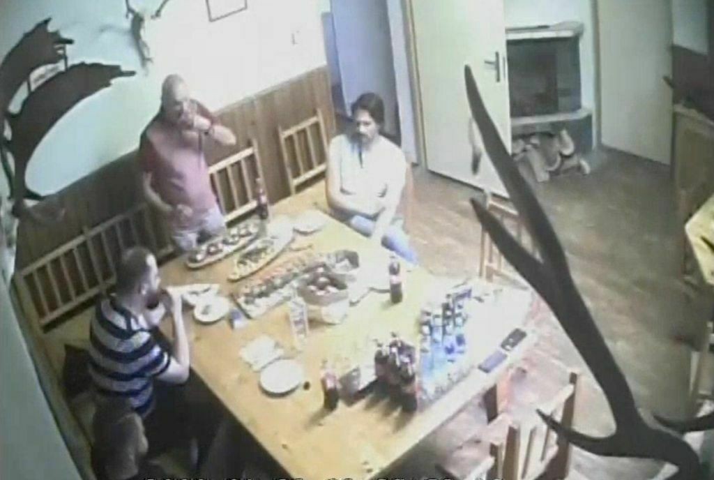 Na fotografii je vidieť predsedu Smeru-SD Roberta Fica po boku Miroslava Bödöra - otca väzobne stíhaného oligarchu. Oproti ním sedí Marek Para - advokát Tibora Gašpara, ktorý obhajuje aj Mariana Kočnera. V pravom dolnom rohu má byť syn Tibora Gašpara - Pavol. Na druhej fotografii je vidno na chate aj Roberta Kaliňáka.