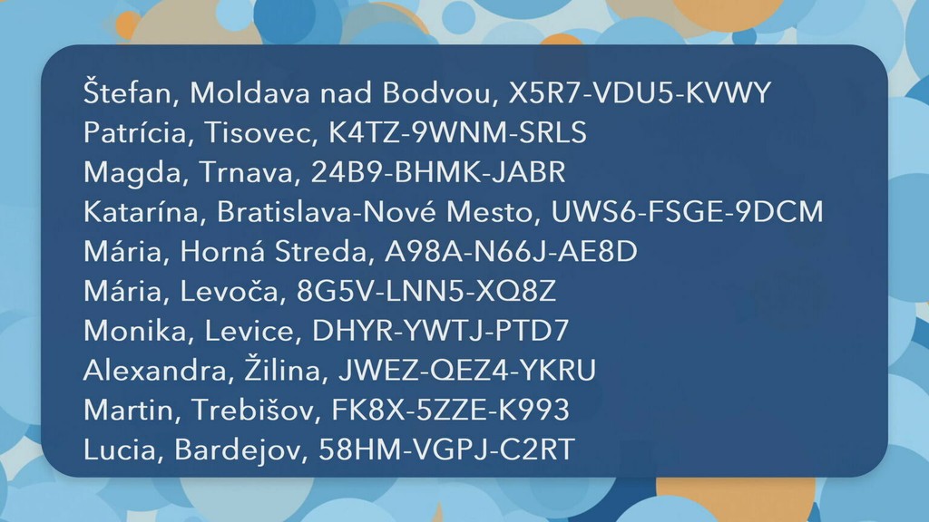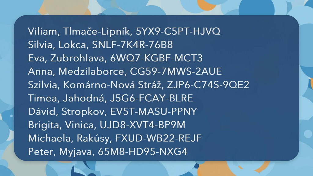 V zozname, ktorý nájdete na tejto stránke, môžete nájsť aj výhercov za predchádzajúce obdobie. Vyhľadávať v ňom sa dá podľa mena, mesta, čísla žrebu alebo výhry.
