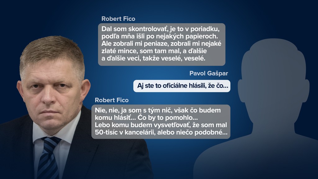 „Nie, nie, ja som s tým nič, však čo budem komu hlásiť… Čo by to pomohlo… Lebo komu budem vysvetľovať, že som mal 50-tisíc v kancelárii, alebo niečo podobné,“ povedal Fico.
