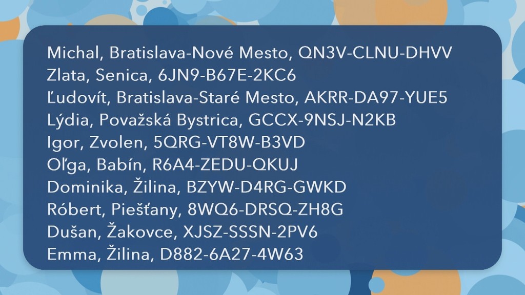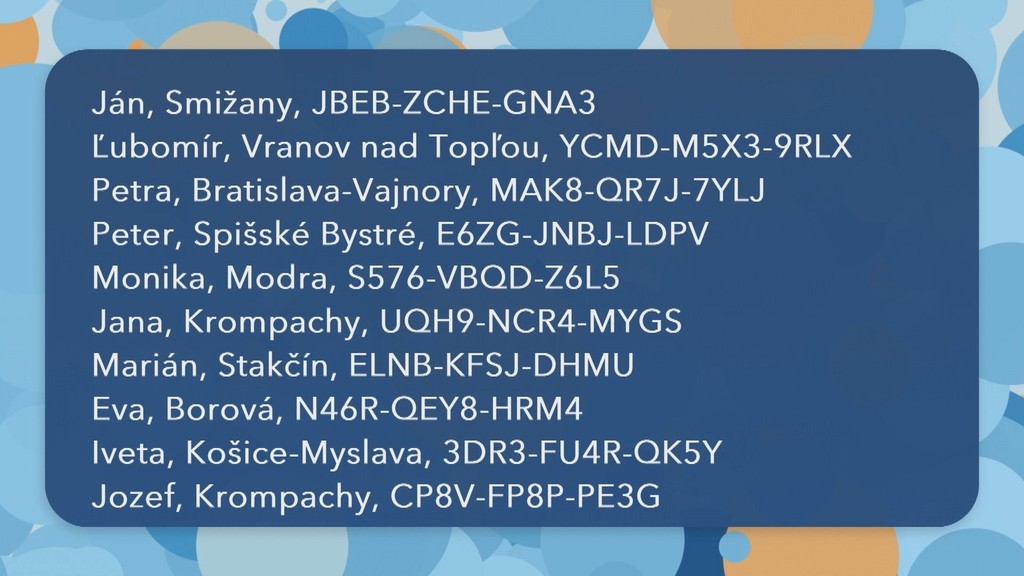 V zozname, ktorý nájdete na tejto stránke, môžete nájsť aj výhercov za predchádzajúce obdobie. Vyhľadávať v ňom sa dá podľa mena, mesta, čísla žrebu alebo výhry.
