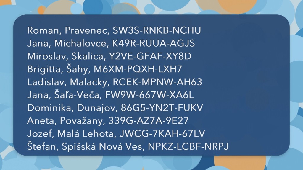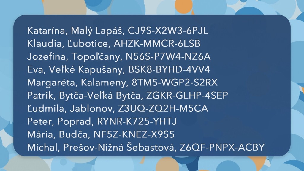 V zozname, ktorý nájdete na tejto stránke, môžete nájsť aj výhercov za predchádzajúce obdobie. Vyhľadávať v ňom sa dá podľa mena, mesta, čísla žrebu alebo výhry.