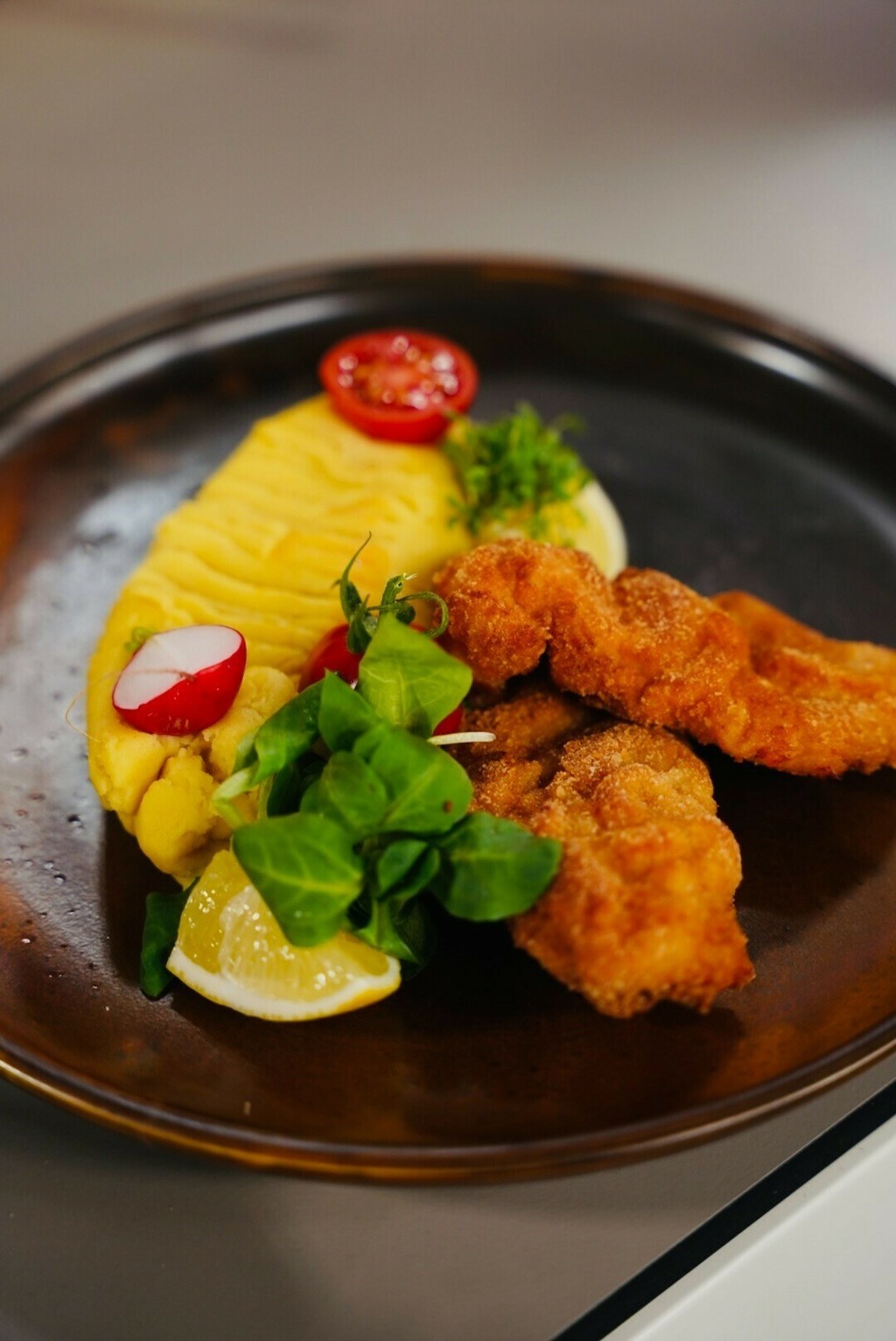 Kurča vykostíme, z kostí spravíme vývar a stehná dáme piecť potreté olejom a soľou. Prsia využijeme na klasické rezne. Polovicu z vývaru zredukujeme na šťavu a podávame k pečeným stehnám s ryžou. Zvyšky z trojobalu zmiešame, pridáme hrsť tvrdého syra a bylinky a vypracujeme pevnejšie cesto. Lyžičkami vykrojíme halušky a vypražíme. Podávame s polievkou.