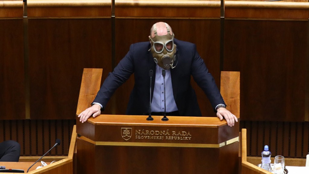 Jedným poslancov rozprave bol aj Andrej Medvecký (ĽSNS), ktorý vystupoval v plynovej maske. Odôvodnil to tým, že je to protest proti noseniu respirátorov.
