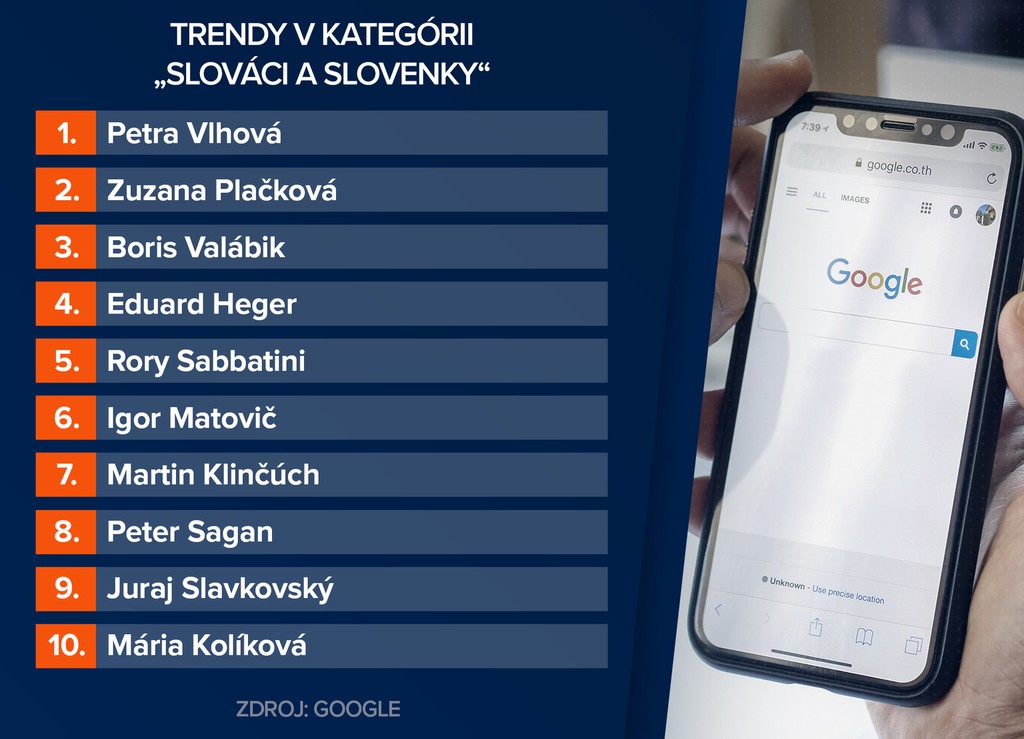 Medzi slovenskými osobnosťami bodovali športovci. Kategóriu vyhrala Petra Vlhová, ktorá v minulej lyžiarskej sezóne zvíťazila v Svetovom pohári v alpskom lyžovaní. Druhým menom, ktoré ľudia hľadali bola Zuzana Plačková, ktorú zadržala NAKA a pár dní strávila v cele predbežného zadržania, neskôr ju, aj s manželom, prepustili na slobodu.