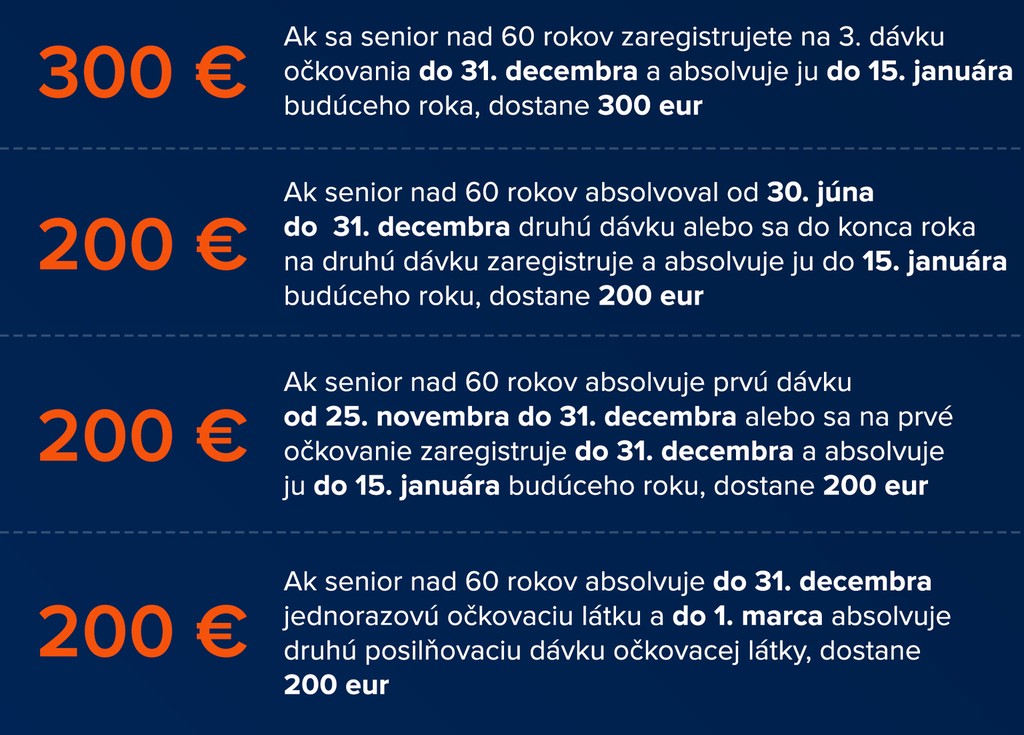 Nárok na očkovaciu odmenu budú mať aj seniori, ktorí sa zaočkovali pred spomínanými dátumami v našej tabuľke.
