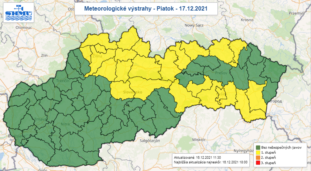 Výstrahy prvého stupňa začnú platiť už v noci zo štvrtka na piatok a budú platiť po celý deň až do soboty popoludnia. Vietor na horách môžu očakávať v Banskobystrickom, Košickom, Prešovskom a Žilinskom kraji.