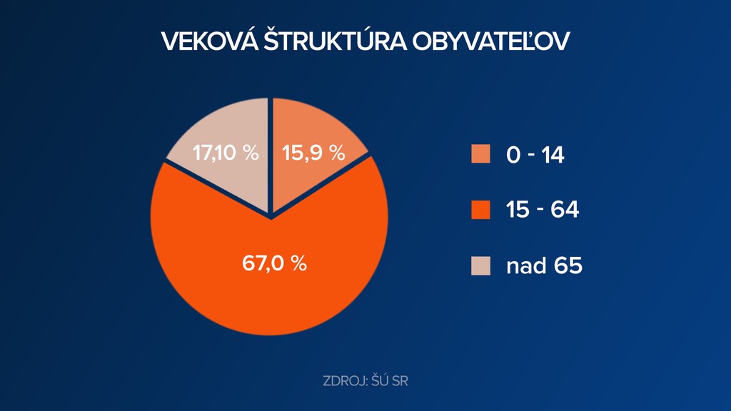 Zo sčítania vyplýva, že Slovensko starne. V produktívnom veku od 15 do 64 rokov žije 67 percent obyvateľov, 17,1 percenta obyvateľov patrí do skupiny starších ako 65 rokov a 15,9 percenta spadá do vekovej kategórie 0 až 14 rokov. Oproti sčítaniu z roku 2011 máme prestarnutejšiu populáciu. Evidujeme aj úbytok obyvateľov.