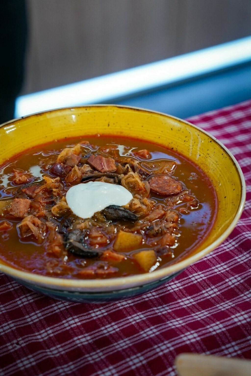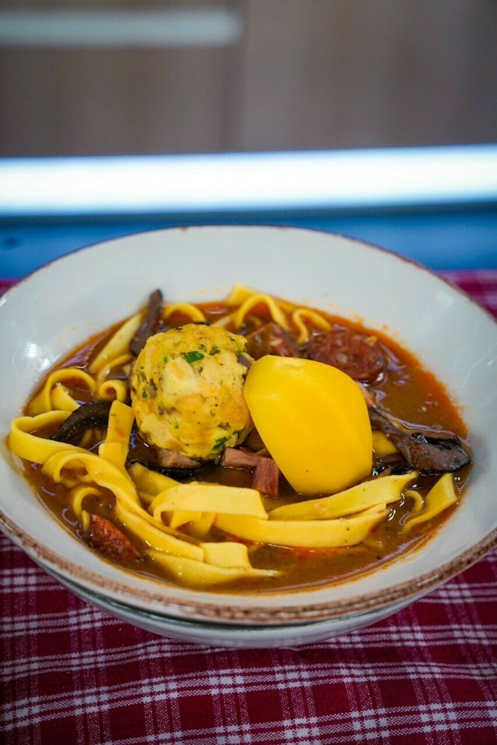 Liptovská kapustnica s celou švábkou, širokými rezancami a slepou kurou