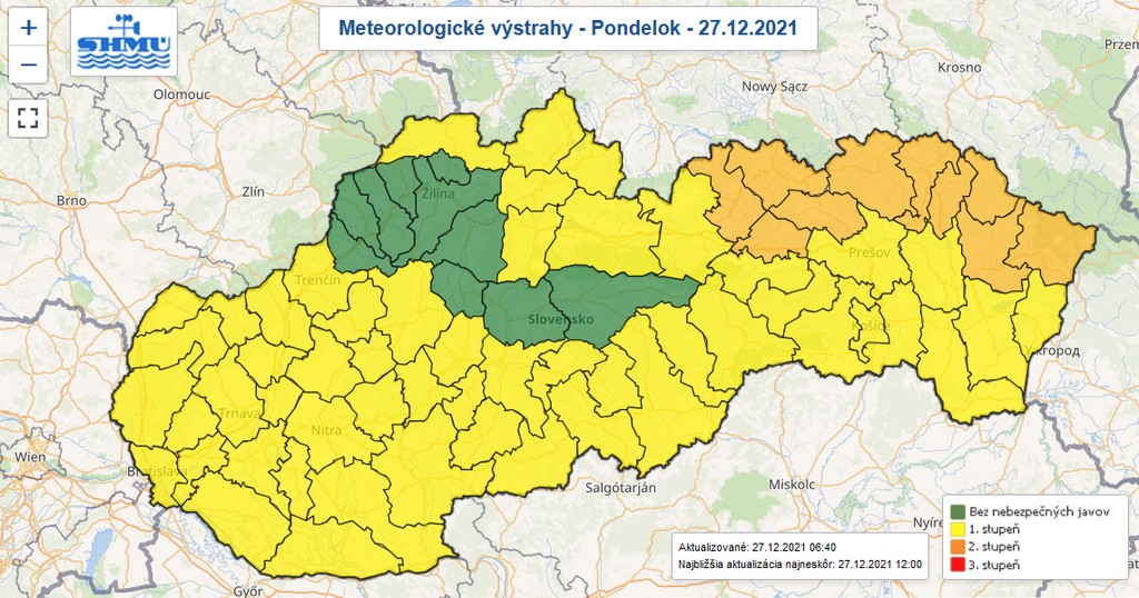 Najmä na východe i severe Slovenska treba rátať s nízkymi teplotami. Slovenský hydrometeorologický ústav (SHMÚ) vydal viaceré výstrahy prvého i druhého stupňa. V pondelok ráno treba podľa meteorológov dávať pozor aj na poľadovicu na cestách.