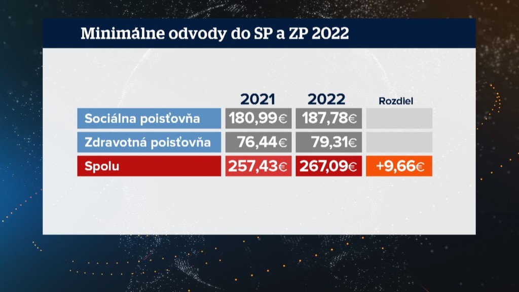 Oproti roku 2021 je to zmena smerom nahor. V tabuľke je vidieť, ako za rok odvody stúpli. Spolu o takmer 10 eur mesačne. Ročne teda skoro o 120, čo je už suma napríklad víkendového pobytu v hoteli.