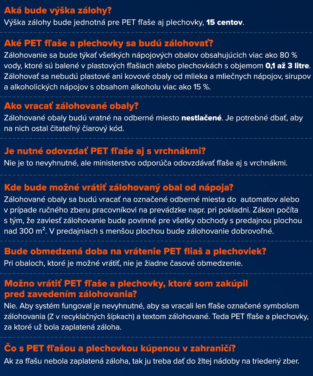 Od 1. januára 2022 je na Slovenku povinné zálohovanie PET fliaš a plechoviek. Všetky zálohovateľné obaly sú označené veľkým písmenom Z v šípkach a ich odovzdanie funguje rovnako ako pri vratných fľašiach zo skla. Tento systém prinesie ekologickejší spôsob nakladania s plastovými obalmi.