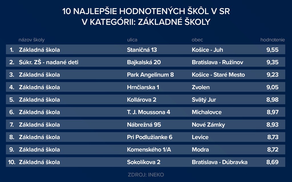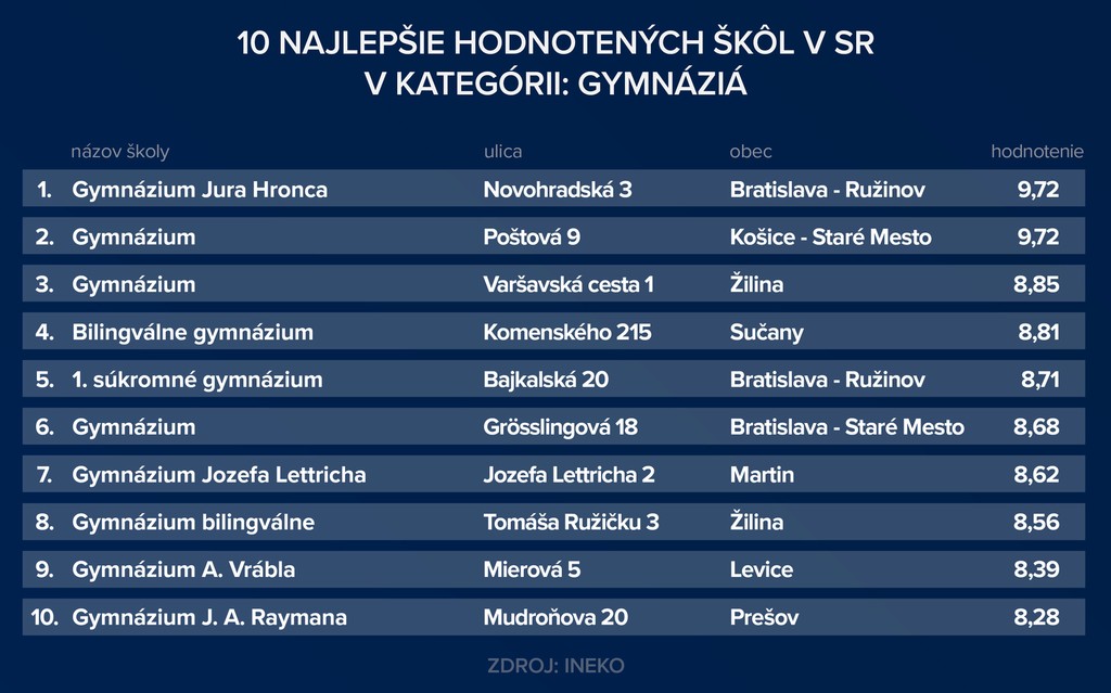 Rebríčky základných a stredných odborných škôl a gymnázií vypracoval INEKO.