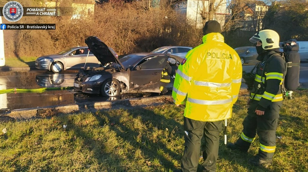 V Bratislave, na Brnianskej pri Patrónke smerom do Lamača, horelo v piatok (14. 1.) popoludní osobné auto zn. Mercedes.