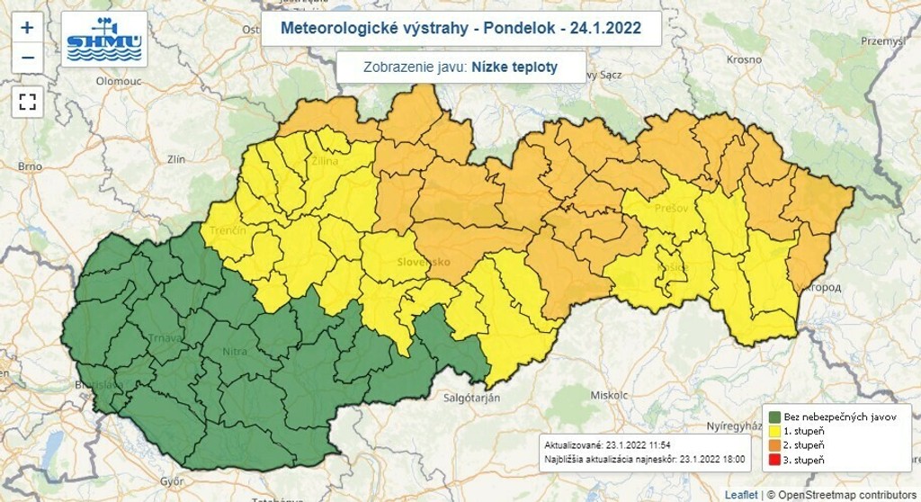 "Predpovedané minimá nie sú vzhľadom na ročnú dobu výnimočné, avšak je šanca na najchladnejšiu noc v doterajšom priebehu zimy," uvádzajú meteorológovia. Dodávajú, že noc z 25. na 26. januára bude výrazne teplejšia.