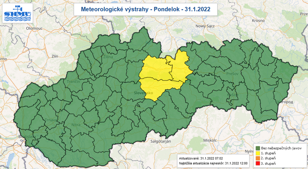 Cestári upozorňujú na poľadovicu na cestách v okrese Stropkov. V okresoch Brezno, Dolný Kubín, Námestovo, Tvrdošín, Levoča, Kežmarok, Stará Ľubovňa a Poprad sa pre sneženie a silný nárazový vietor tvoria snehové jazyky a záveje. Cesta III/3061 medzi Štrbou a Šuňavou je z tohto dôvodu uzavretá.