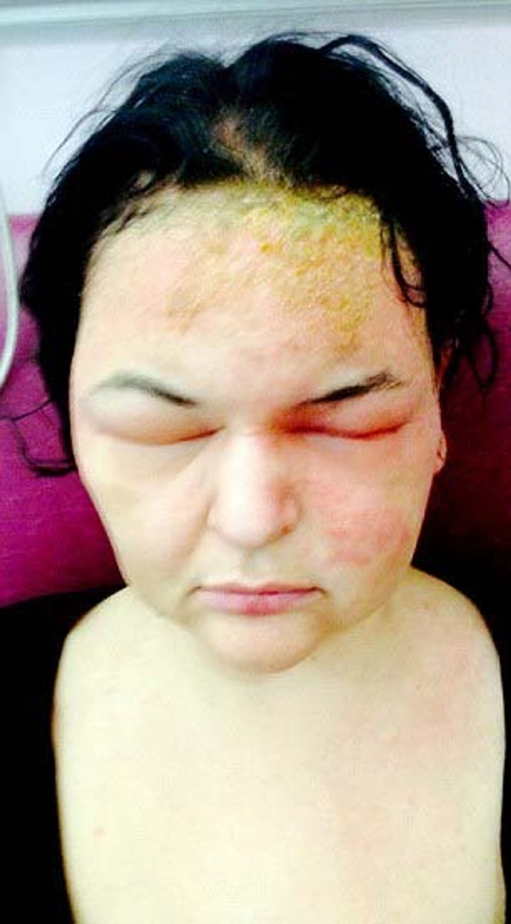 Manžel ju teda vzal do nemocnice, kde jej predpísali steroidy a jej pokožku prirovnali k tej poleptanej na obetiach požiaru.