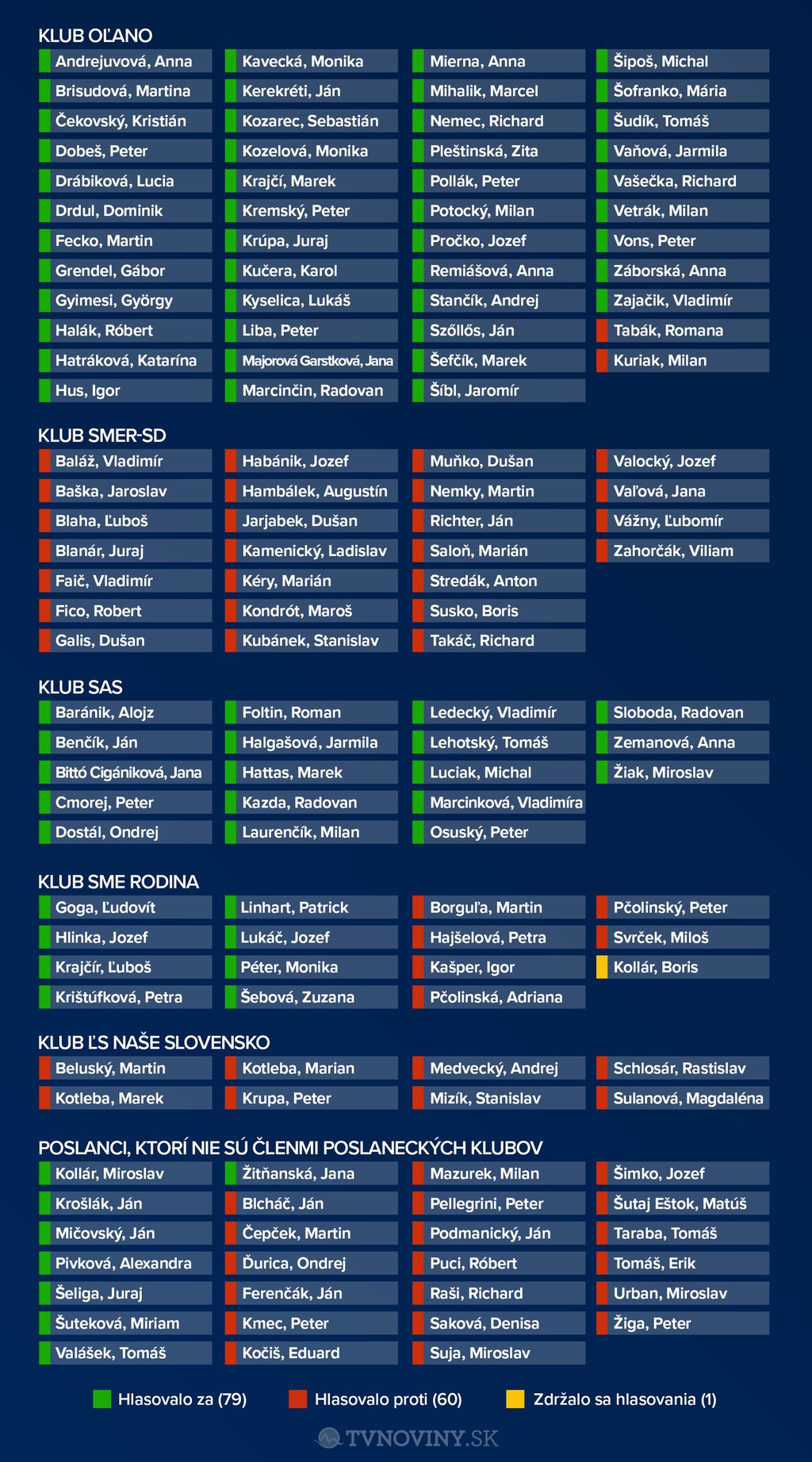 Hnutie Sme rodina nehlasovalo jednotne, proti boli Martin Borguľa, Adriana Pčolinská, Peter Pčolinský, Petra Hajšelová, Igor Kašper a Miloš Svrček. Predseda hnutia a NR SR Boris Kollár sa zdržal.