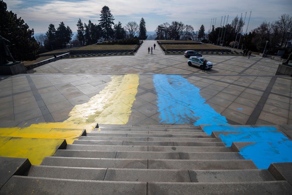 Časť vojenského pamätníka Slavín v Bratislave poškodil neznámy páchateľ modrou a žltou farbou. Natrel schody, stĺpy pamätníka i priestor pred ním. Výška škody bude predmetom ďalšieho dokazovania.