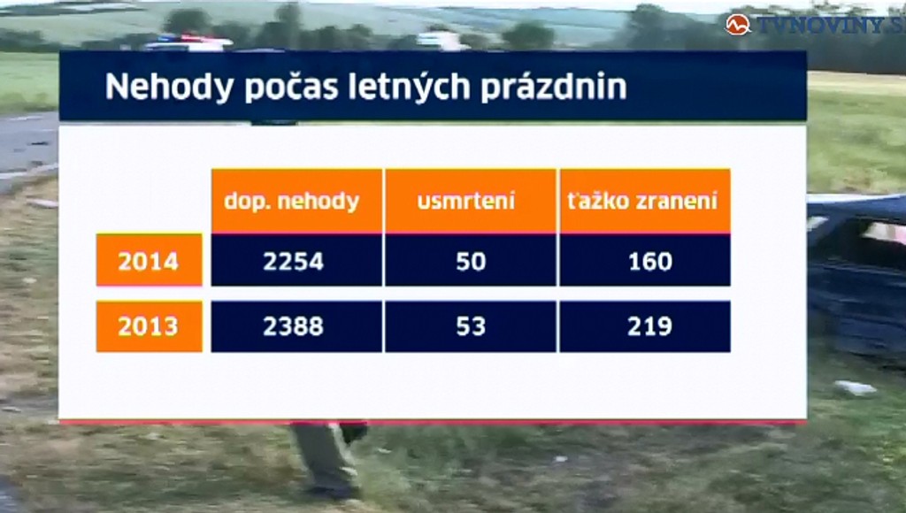 Letné prázdniny si vyžiadali až 50 ľudských životov. "Počas letnej turistickej sezóny v porovnaní s minulým rokom klesol počet nehôd na 2 254, teda ich bolo o 134 menej," povedal hovorca polície Michal Slivka.