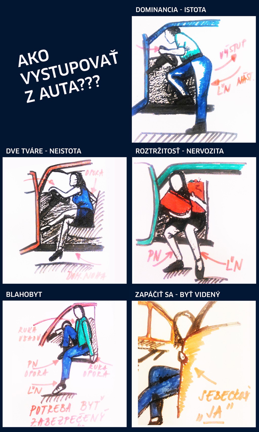 „Vystupovanie z auta o nás prezrádza napríklad aj to, či sme v strese. Ak nie sme v pohode, vystupujeme zbrklo. Smerodajná je najmä rýchlosť a energickosť, ktorá hovorí o tom, či máme emočnú citlivosť pri šoférovaní. Záleží aj na tom, aké auto vlastníme," prezradila odborníčka na neverbálnu komunikáciu Nora Lauková.