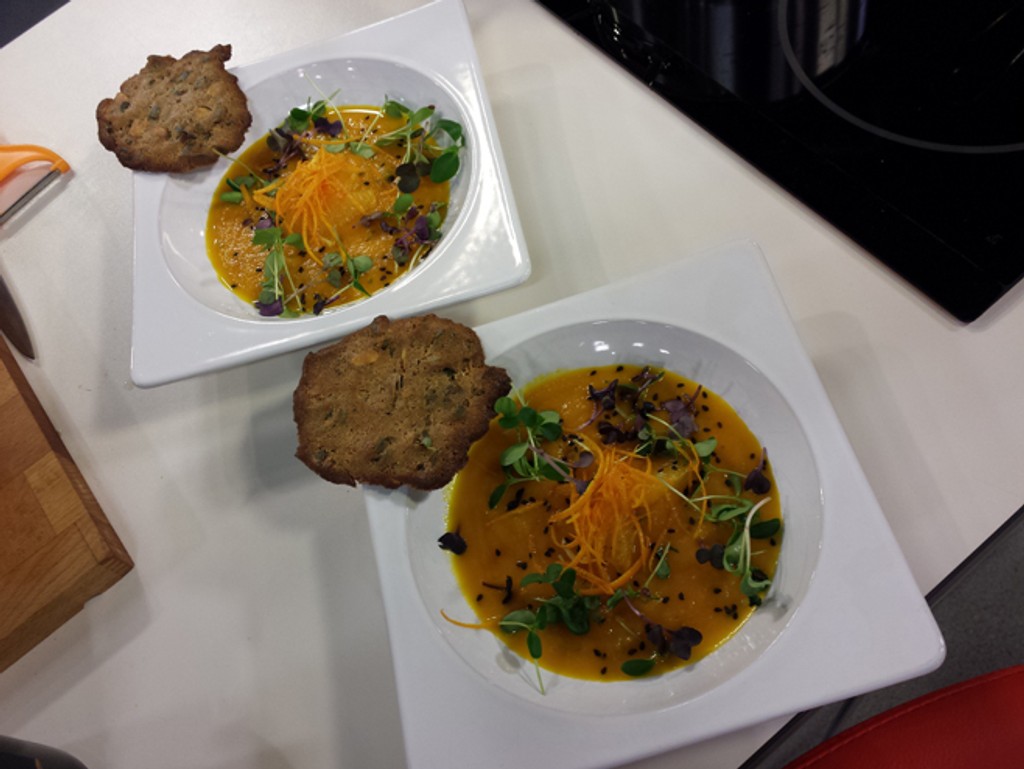 Mrkvová polievka s pomarančom s cookies z tekvicových jadierok
