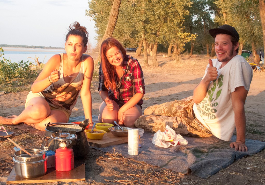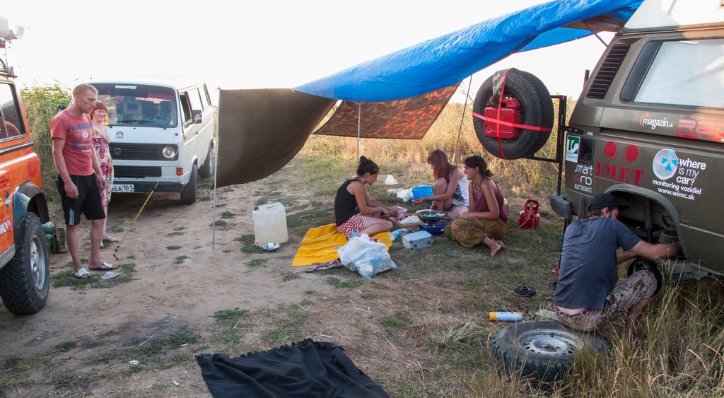 Zostali sme tam dlho a tak sme miesto na spanie hľadali po tme. Cieľ bol niekde pri rieke Volga. Dostať sak nej však nebolo jednoduché, lebo ju lemovali vysoké útesy, ktoré rieka vyhrýzla postupom času. Nakoniec sme ale vysledovali miestne obyvateľstvo, cestička sa našla a my sme si už rozkladali kemp a hľadali si nových kamarátov u domorodcov. Aj sme našli. Chlapíka v maskáčoch, dve ženy a vojaka ktorý bol po dvoch turnusoch v Afganistane a dokázal vypiť 10 litrov vodky za deň. Chcel to naučiť aj nás, ale po treťom poldecáku sme to vzdali.