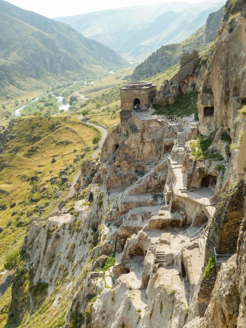 Odchod z Ruska bol bezproblémový. V noci sme okolo cesty badali siluety vysokých hôr, ktoré sa v plnej kráse ukázali až ráno, keď sme sa zobudili kúsok pod Kazbegom. Kúsok odtiaľ, sme navštívili kláštor, ktorý je gruzínskym národným symbolom a aj sme pochopili prečo. Bolo tam nádherne. Všetko. Domorodý šerpa na Lade Nive nás poslal k termálnym prameňom, kde sme sa rozhodli kempovať, ale naneštastie si ich pred nami obsadili, chlapci zo samopalmi, čo strážili akýsi strategický priesmyk pri hraniciach. Rázne nám vysvetlili že: „Zdes prablem, idijte".