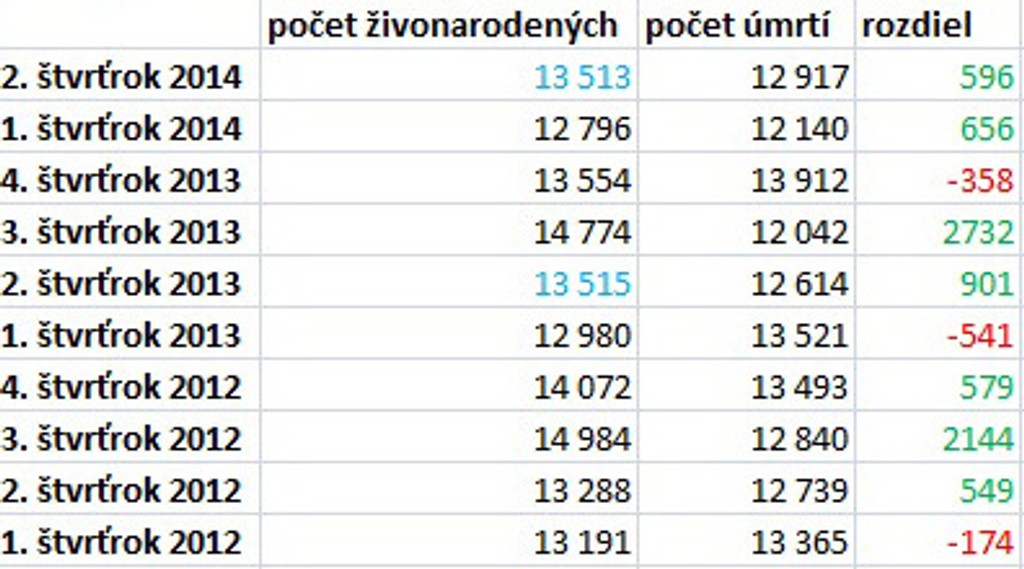 Celkovo z roka na rok pôrodov ubúda, ale počet obyvateľov ešte rastie. Novorodenci totiž naďalej prevyšujú počet úmrtí a Slovensko navyše získava ročne stovky občanov prisťahovalectvom.
