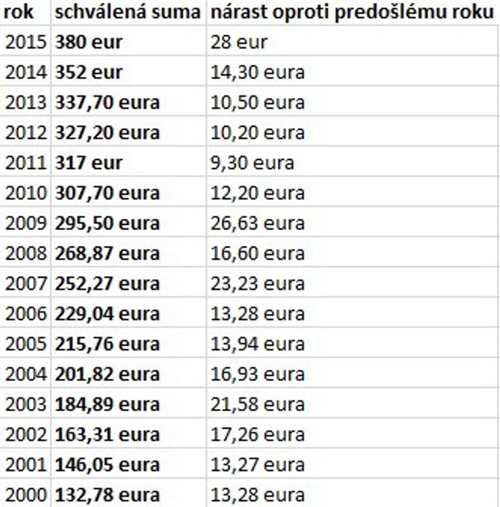 Podobným tempom zdvihli minimálny plat len v roku 2009 - takmer o 27 eur.